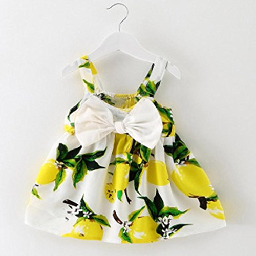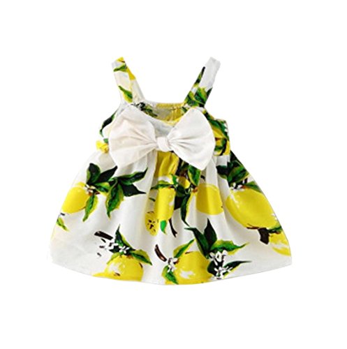 Robes Bébé Fille 0-24M, Bonjouree Robes à Fleurs de Princesse Sans Manches Pour Enfant Filles (0-6 M, Jaune)
