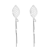 Boucles d'Oreilles Femme, Plaqué or Blanc"Feuille...