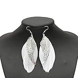 Boucles D'oreilles Plume Aile Argenté Blanc...