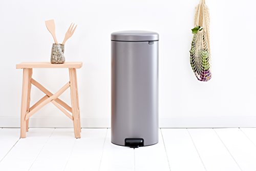 Brabantia 114441 Poubelle à Pédale Newicon avec Seau en Plastique, 30 L - Platinum