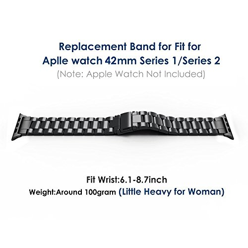 Simpeak Bracelet Apple Watch 42mm Métal Fermoir en Acier Inoxydable Bande de Remplacement pour Apple Watch Series 3 Series 2 Series 1 - Noir