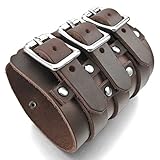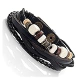 Tribal Steel Bracelet à Double Tour en Cuir...