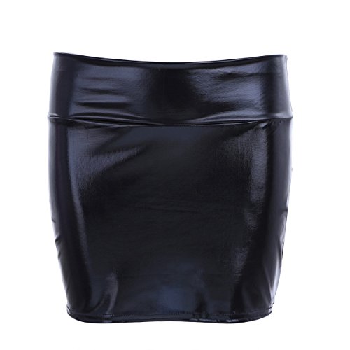 IINIIM Femmes en cuir verni brillant Mini-jupe Moulante costume Plaisir Mini Robe pour Fête Noir taille Unique