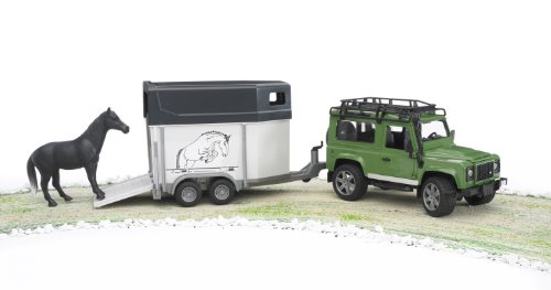 BRUDER - 02592 - Land Rover Defender 90 Break avec Van et un Cheval - Vert