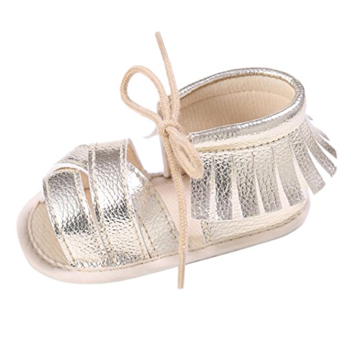BZLine® Frange PU Cuir Sandales au Lacet à Couleur Unie Pour Bébés Filles 0~18Mois, Anti-Glissant (0~6 Mois, Or)