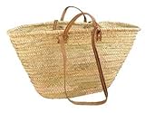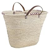 Cabas en palmier naturel - anses en cuir...