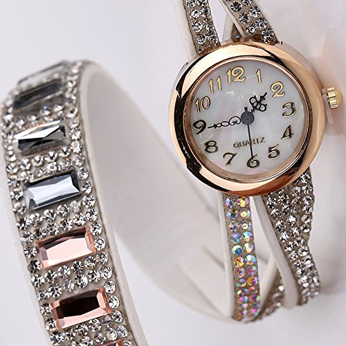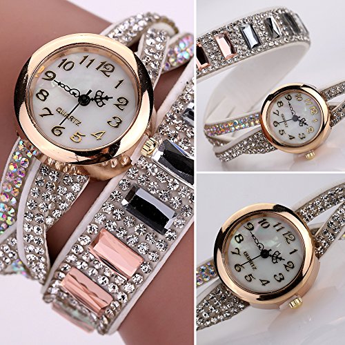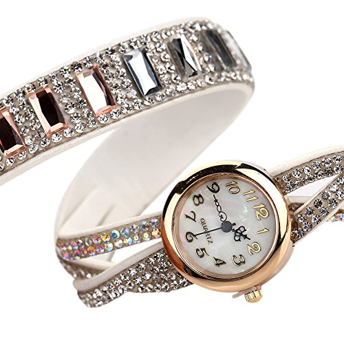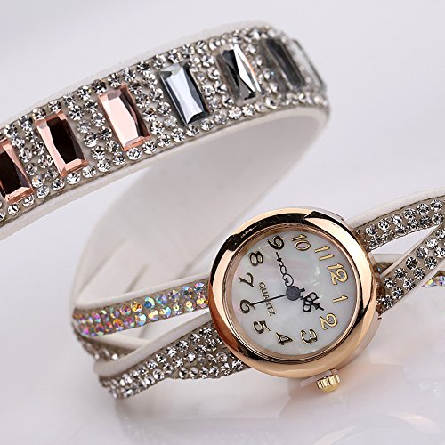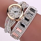 La Cabina Femme Fille Chic Montre Bracelet en Rhinestone Strass Montre pour Robe Soirée Cocktail Ville (Blanc)