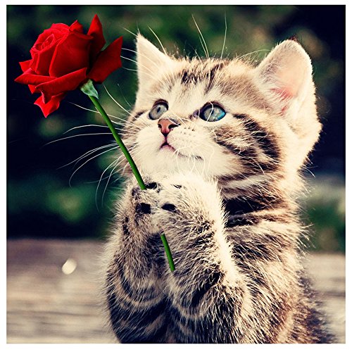 La Cabina 5D Peinture en Diamant DIY Point de Croix en Résine Décoration de Maison Salon Chambre - Chat Portant Rose