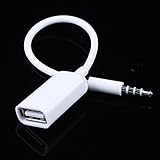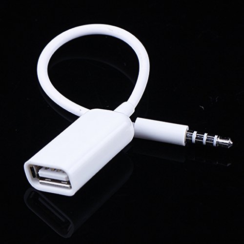- Package Contents:1X White 3.5mm Male AUX Audio Plug Jack to USB 2.0 Female Converter
