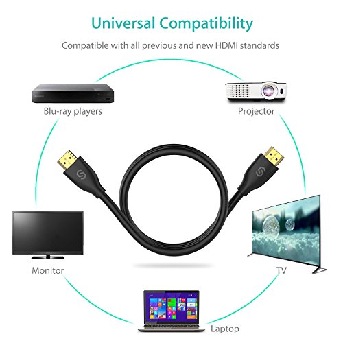 Cable HDMI 2.0 Syncwire - Cordon HDMI 4K Ultra HD Haut Débit 18Gbps Compatible avec Fire TV, Apple TV, Ethernet, ARC, Video 4K UHD 2160p, HD 1080p, 3D, Xbox, PlayStation, PS3, PS4, PC - 1.5M Noir