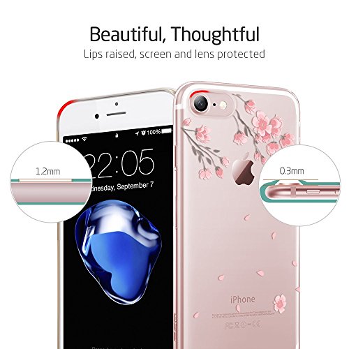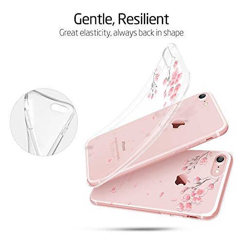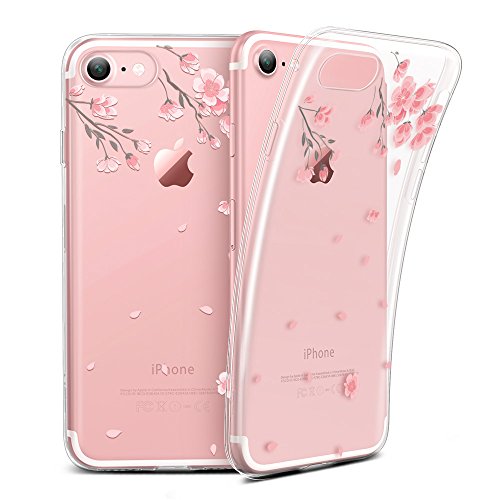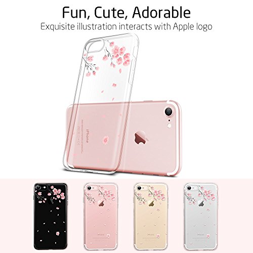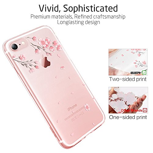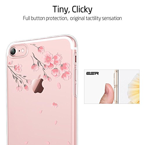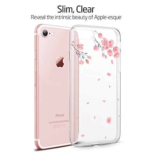 Coque iPhone 7 Cerisier, ESR iPhone 7 Coque Transparente Silicone Gel TPU Souple avec Cute Motif Dessin Mignon Imprimé, Housse Etui de Protection Bumper Premium [Anti Choc] [Ultra Fine] [Ultra Léger] pour Apple iPhone 7 4,7 pouces (Série Pomme, Fleur de Cerisier)