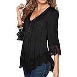 Tee shirt Femme Fille Chic Longra Col V Dentelle...