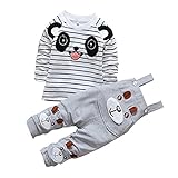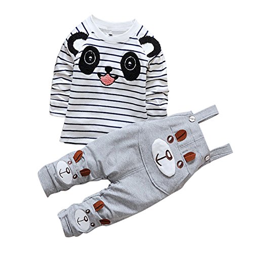CHIC-CHIC Ensemble Salopette avec Haut Longues Manches Bébé Garçon Fille Panda Rayure Haut T-shirt Mignon 18-24mois Gris