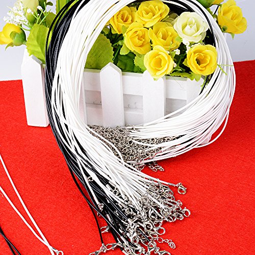 (44.5+4.5cm)100pcs Collier Corde de Cire avec Fermoir de Homard Noir et Blanc Fil Collier pour Fabrication Bijoux Bricolage Bracelet