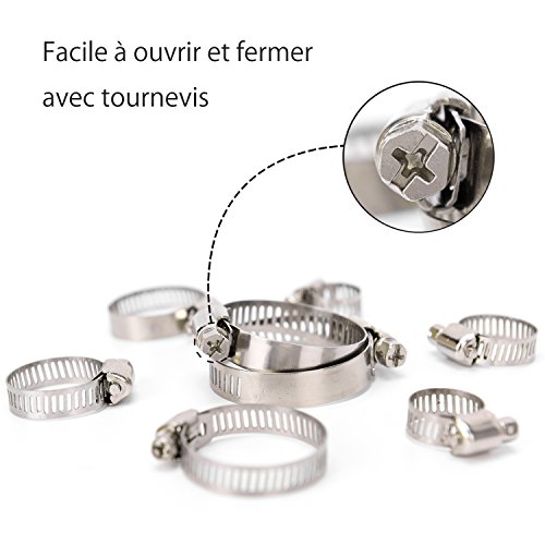 Ces pinces en acier inoxydable peuvent être facilement relâchées ou serrées par un tournevis pour ajuster la plage de diamètre de la bande (le tournevis n'est pas inclus).