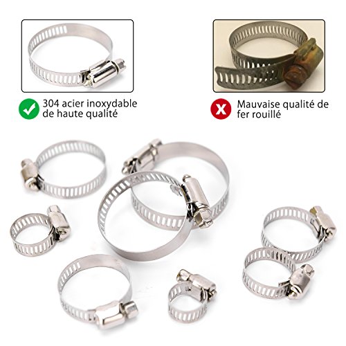 Ces colliers de serrage sont en acier inoxydable de bonne qualité, ils sont robustes, durables et pas faciles à rouiller; En outre, ils sont flexibles et résistants à la corrode; Ces fonctionnalités contribuent à prolonger leur durée de vie.