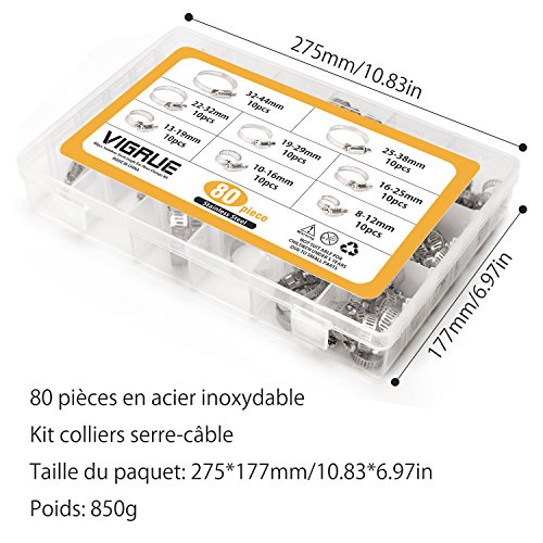 Collier de Serrage(80Pièces) - Ajustable en Acier Inoxydable Tuyau Pinces Clips Fixation - Vendu Par VIGRUE