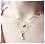 Deux couches de chaîne plaqué or Lune étoile...