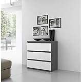 NATTI Commode 3 tiroirs gris/blanc brillant