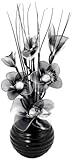 Flourish Vase avec fleurs chrome/noir/blanc