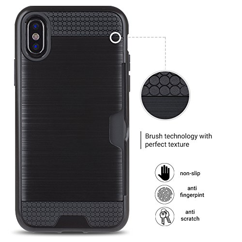 Coque iPhone X Antichoc Armor Coque Noir de Moozy® - Case Double Couche en TPU Souple et PC Dur Design brossé Fente pour Carte