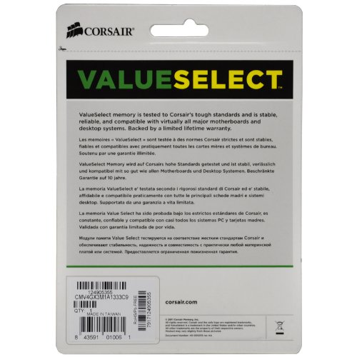 Corsair CMV4GX3M1A1333C9 Value Select 4GB (1x4GB) DDR3 1333 Mhz CL9 Mémoire pour ordinateur de bureau