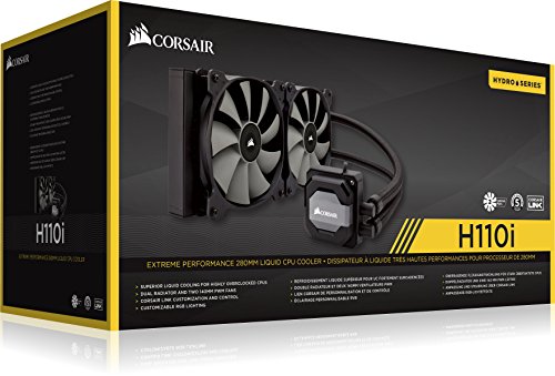 Corsair Hydro H110i Refroidisseur Liquide (280mm Radiateur, deux SP140 PWM Ventilateur, All-in-One Liquid CPU Cooler) Noir