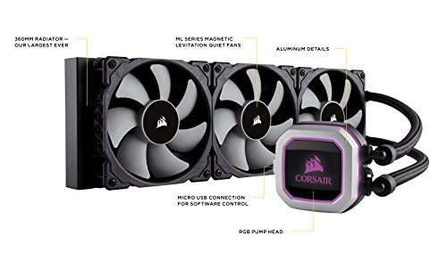 Corsair Hydro H150i PRO RGB Liquide Refroidisseur (360mm Radiateur, Trois ML120 Ventilat Éclairage RGB Avancé et Contrôle du Ventilateur par Logiciel, All-in-One Liquid CPU Cooler) Noir