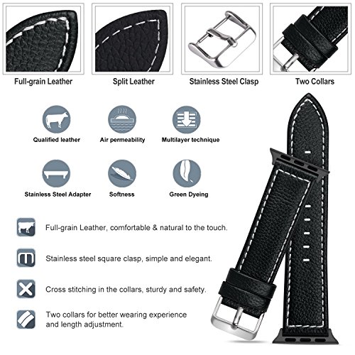 7 Couleurs pour Apple Watch Bracelet,Fullmosa® Jan iwatch 38mm Apple Watch Band/Bracelet en Cuir de Veau avec Fermoir en Acier Inoxydable pour iwatch Series 1 Series 2 Series 3, Noir