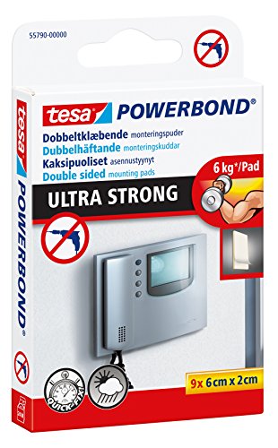 TESA 55790–00000–01 Coussinets adhésifs à double face Ultra résistants en mousse, Blancs, 9 pièces