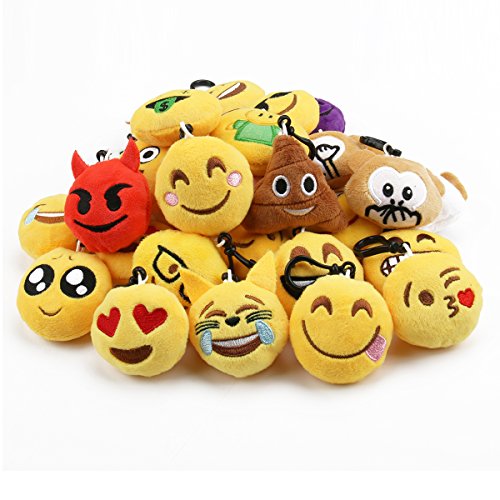 Cusfull Lot de 32 Mini Emoji Porte-clés en Peluche Mignon Émoticône Emoji pour Cadeau De La fête des Mères Décorations maison Cadeau de Pâques enfants Cadeau de Fête Noël