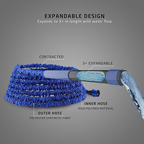 - Extensible x3: Mesure seulement 7 mètres lorsqu'il est rétracté; s'agrandi jusqu'à 3 fois sa longueur originale lorsqu'il est sous pression ; pour un gain de place étonnant!