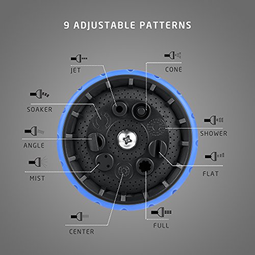 - Pistolet d'Arrosage 9 Fonctions: 9 fonctions différentes sont facilement ajustables sur le pistolet d'arrosage pour satisfaire tous vos besoins. Le grip ergonomique doux est très confortable, la valve de contrôle intégrée régule le débit d'arrosage.