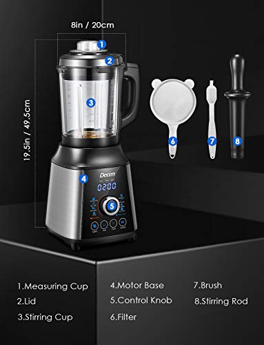 Decen Blender, Blender Professionnel, Puissance d'agitation 1200W et Puissance de chauffage 800W, 8 Programmes, 28000 rpm, 1,75 litres avec 8 Couteaux en Acier Inoxydable