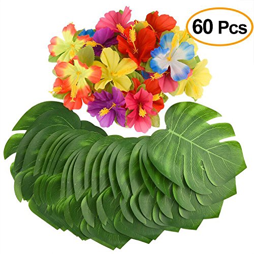 60 pièces fournitures de décoration de fête tropicale. Peut être appliqué pour voyager à hawaïen, maison et décor de fête de mariage, festival, fête à thème hawaïen et plus, peut également les utiliser pour le bricolage.