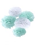 5 Pompons à suspendre menthe et blancs