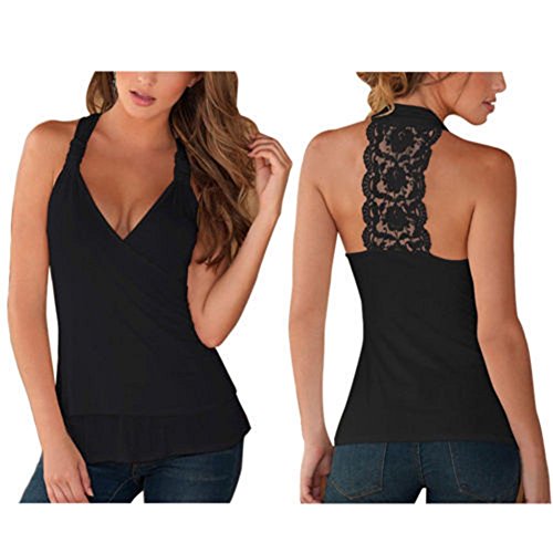 Hibote Femme Tank Tops Chemise Dentelle Coton Femmes Shirt Sling Patchwork Chemises Sexy Profond V Décolleté Top Solide Slim Fit Blouse Doux Confortable