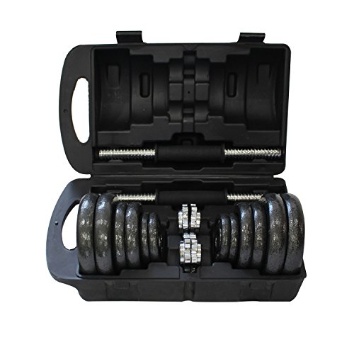 Todeco - Set d'Haltères, Set de Poids Ajustable - Matériau de la barre: Acier chromé - Matériau de la poignée: Caoutchouc naturel - Noir, 20 kg, Fonte, Avec une mallette noire