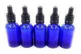Cinq 30ml Bouteilles en Verre Bleu avec compte-gouttes...