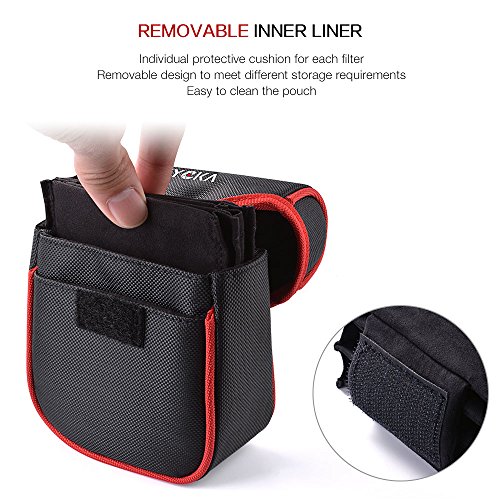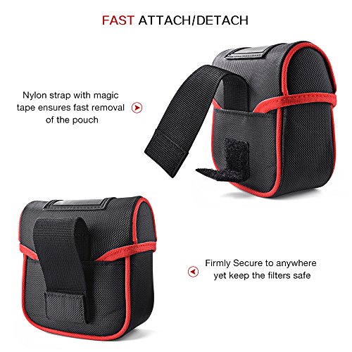 Caractéristiques: Conçu pour la garde en rond, les filtres carrés et les accessoires. Taille compacte de 125 mm (H) x 120 mm (W) x 5 mm (épaisseur) Gardez vos filtres éloignés des impacts innatendus pendant le transport. L'extérieur est en Nylon. Un design résistant à l'eau et à la poussière qui offre une protection complète pour vos filtres. La doublure intérieure détachable présente des couches individuelles pour stocker plusieurs filtres. Le couvercle de poche nouvellement conçu vous permet d'économiser votre temps, pas besoin de chercher et de fouiller dans votre sac une fois que vous devez changer de filtre. La sangle en nylon avec une bande magique qui sécurise la poche sur votre ceinture, votre sac ou votre trépied, ce qui le rend plus proche et pratique pour que vous puissiez obtenir vos filtres. Livré avec un chiffon de nettoyage en microfibre pour nettoyer efficacement la saleté de vos lentilles et de vos filtres sans laisser de rayures. Spécification: