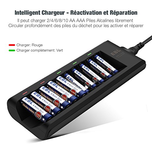 EBL Chargeur de Piles Alicalines AA/AAA Charge de Courant faible avec 10 Slots Indépendant