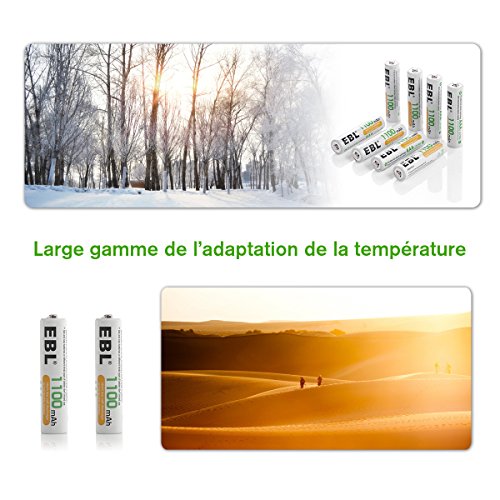 EBL 8 piles AAA 1100 mAh pile rechargeable 1.2V Ni-MH plus de 1200 cycles