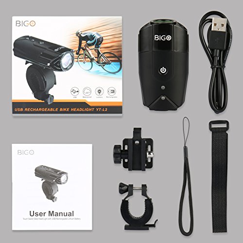 Eclairage Avant, BIGO LED Phare Lampe pour Vélo Puissante USB Rechargeable, 900 Lumens Lumière, Multi Modes d'éclairage, Antichoc Impermeable IP65, 295ft distance pour VTC VTT