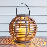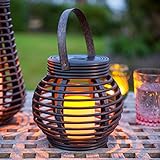 Lanterne Solaire Ronde Effet Rotin avec Bougie...