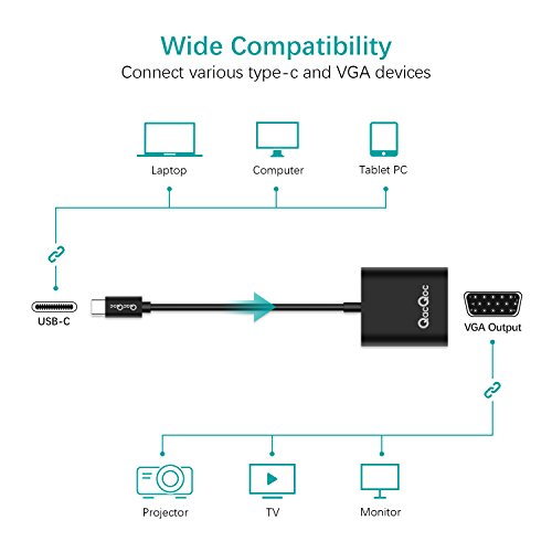 Cet adaptateur est idéal pour connecter un écran supplémentaire à votre MacBook, Chromebook ou d'autres appareils avec USB C à un moniteur ou un projecteur via le port VGA, en vue de vous donner une meilleure expérience de visionnement. Résolution pour la vidéo jusqu'à 1080p (Full HD).