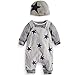 Ensemble à Manches Longues, Internet Bébé Garçon Fille T-shirt à rayures + Salopettes + Casquette (12-18 Mois, Gris)