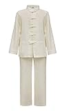 Tenue de tai chi beige homme coton et lin...