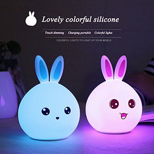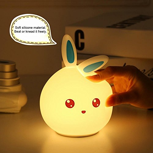 Enshey Multicolore Veilleuse Lapin LED, Mignon Lapin Enfants Lumière Nuit Silicone DEL Variable Couleur Pat Control (Bleu)