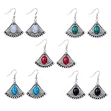 YAZILIND Chic en forme d’éventail tibétain argent ovale Turquoise boucle d’oreille