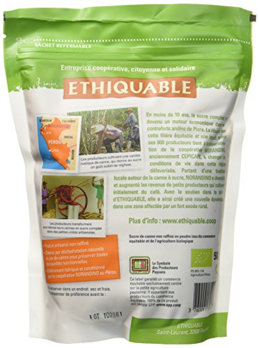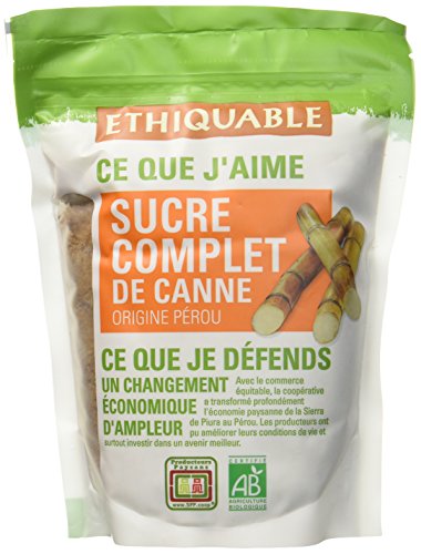 Ethiquable Sachet Sucre Complet de Canne Poudre Pérou Bio et Équitable en 500 g Paysans Producteurs - Lot de 4